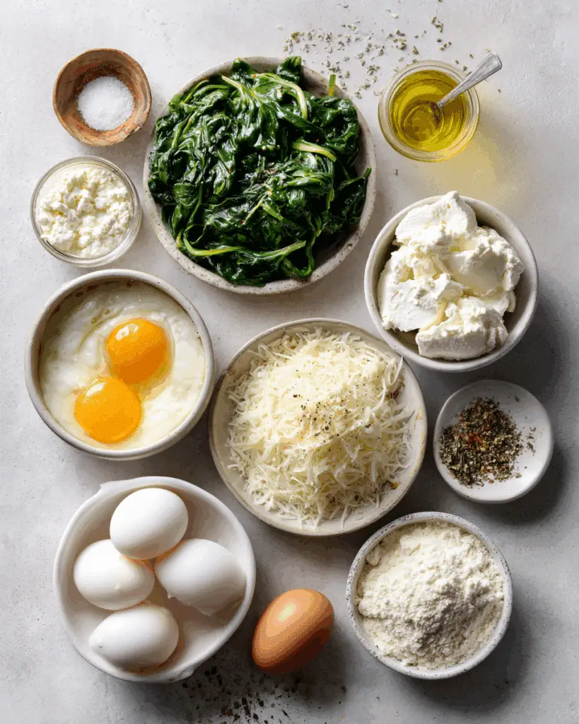 Ricotta Cheese: Creamy, fluffy, and neutral, ricotta is the perfect canvas for herbs and spices. It melds beautifully with spinach, creating that signature soft filling.