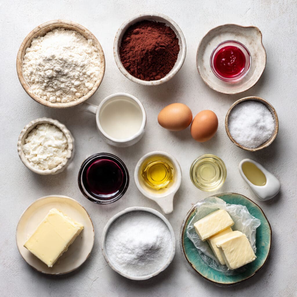 Ingredients in Stunning Heart-Shaped Red Velvet Cupcakes