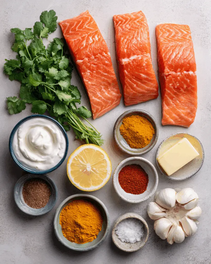 1. Salmon Fillets: 4 skin-on, about 6 ounces each. Rich and fatty, they absorb flavor beautifully.