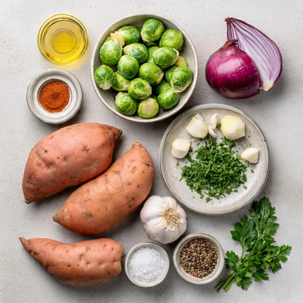 Ingredients in Sweet Potato Brussel Sprout Hash