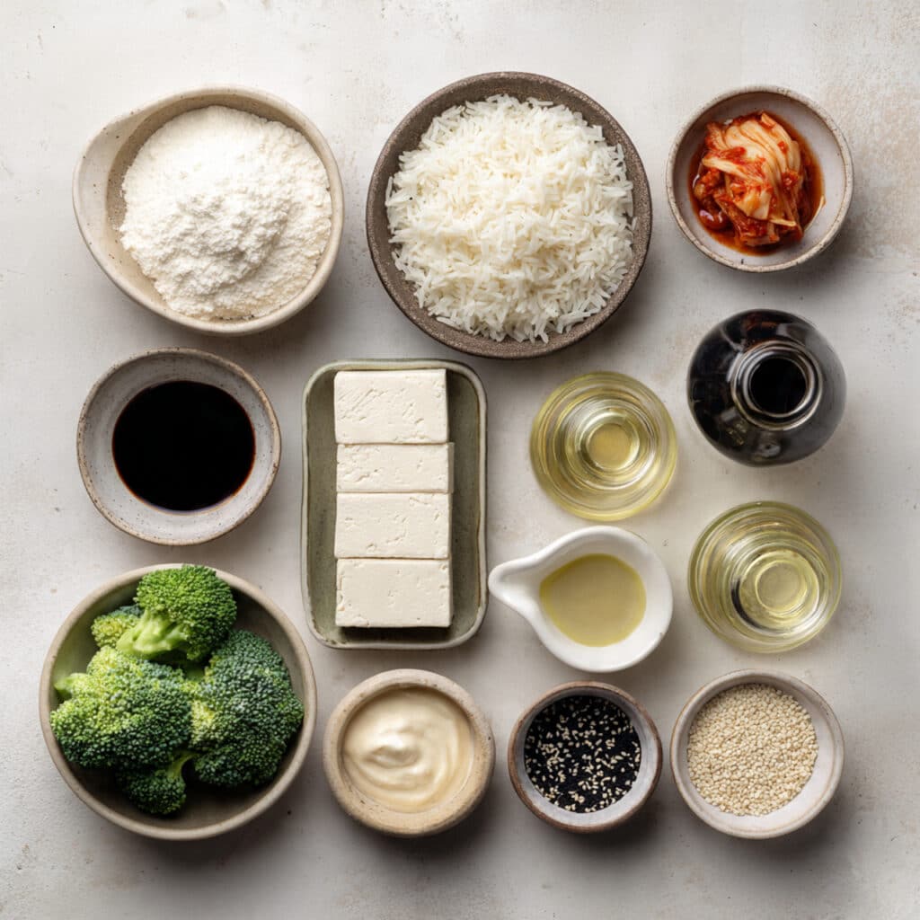 Ingredients in Teriyaki Tofu Bowls with Kimchi Mayo