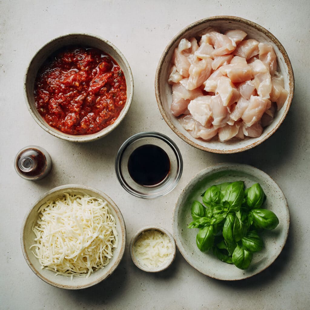 As it bakes, the chicken becomes tender and juicy while soaking in all that tomato goodness. The cheese melts into a soft, creamy layer, and the balsamic glaze adds that subtle sweetness that keeps every bite interesting. You get freshness, richness, and a little tang all in one forkful.